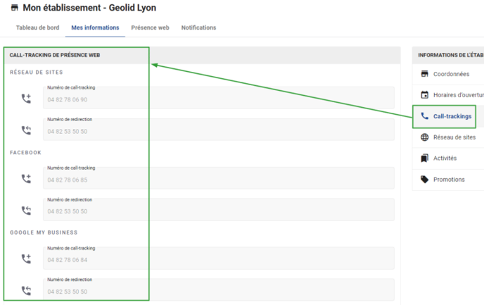 👉 Note : Les numéros de call tracking sont générés par Geolid et ne peuvent pas être modifiés par les utilisateurs.